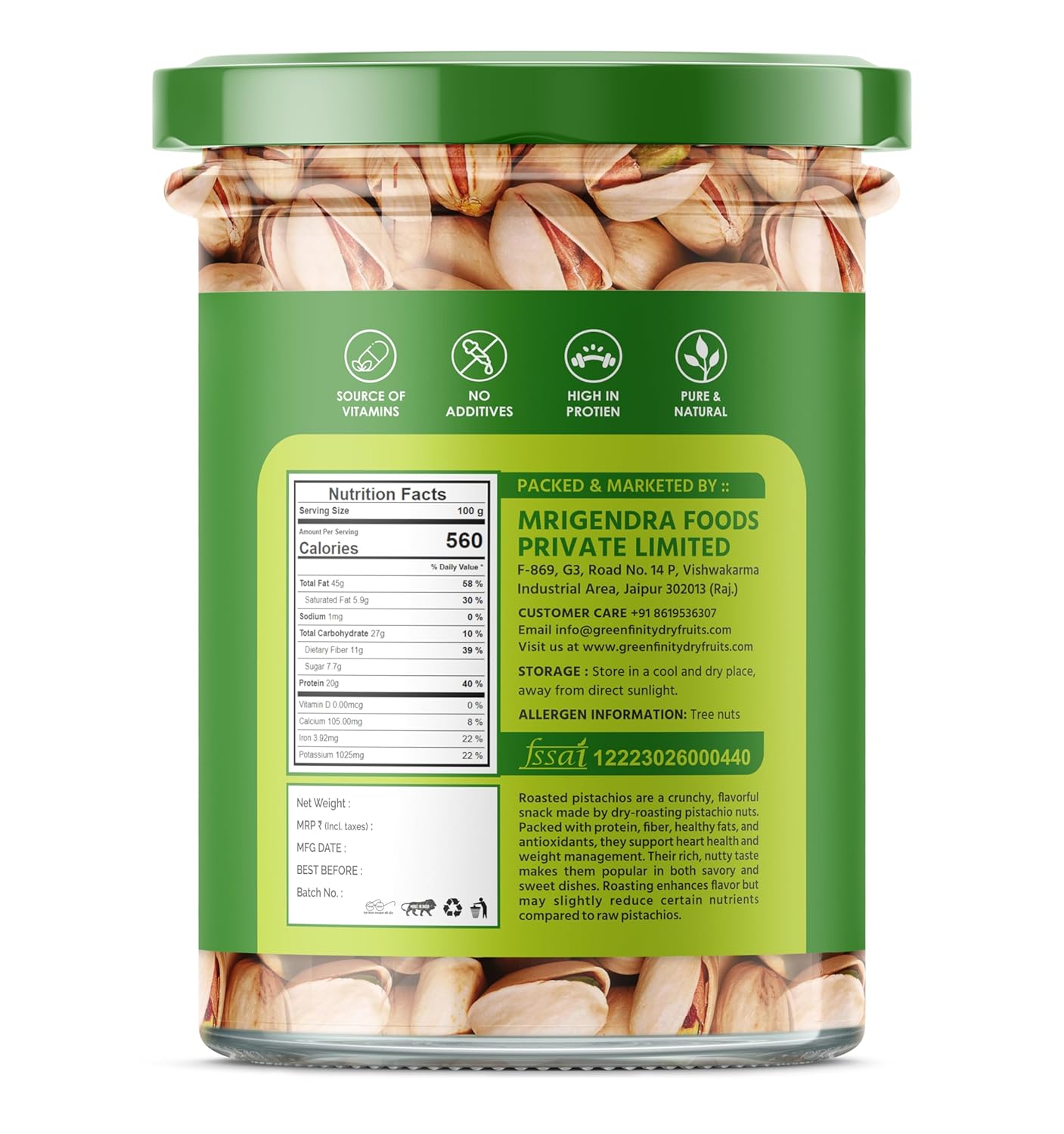 Whether you need a mid-morning energy lift, a guilt-free post-workout munch, a nutritious addition to your evening tea, or a thoughtful, premium gift, GreenFinity Roasted Pistachios are the definitive choice for the health-conscious individual.