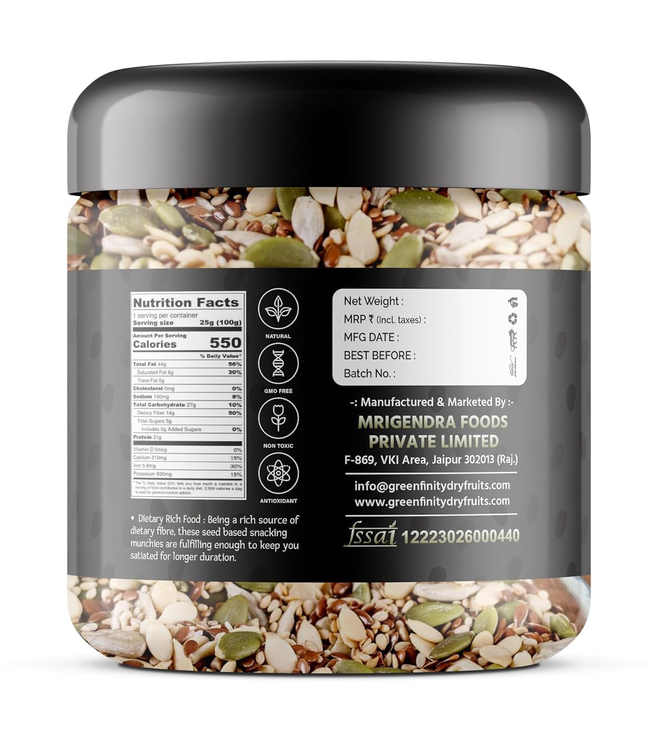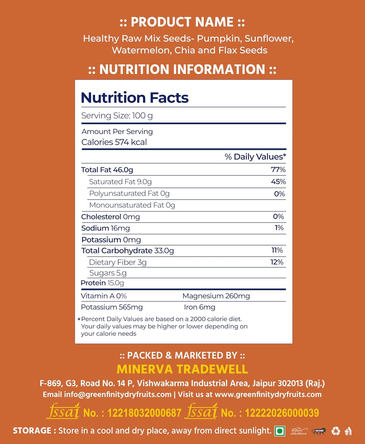 GreenFinity Healthy Raw Mix Seeds- Pumpkin, Sunflower, Watermelon, Chia Flax Seeds (250g)
