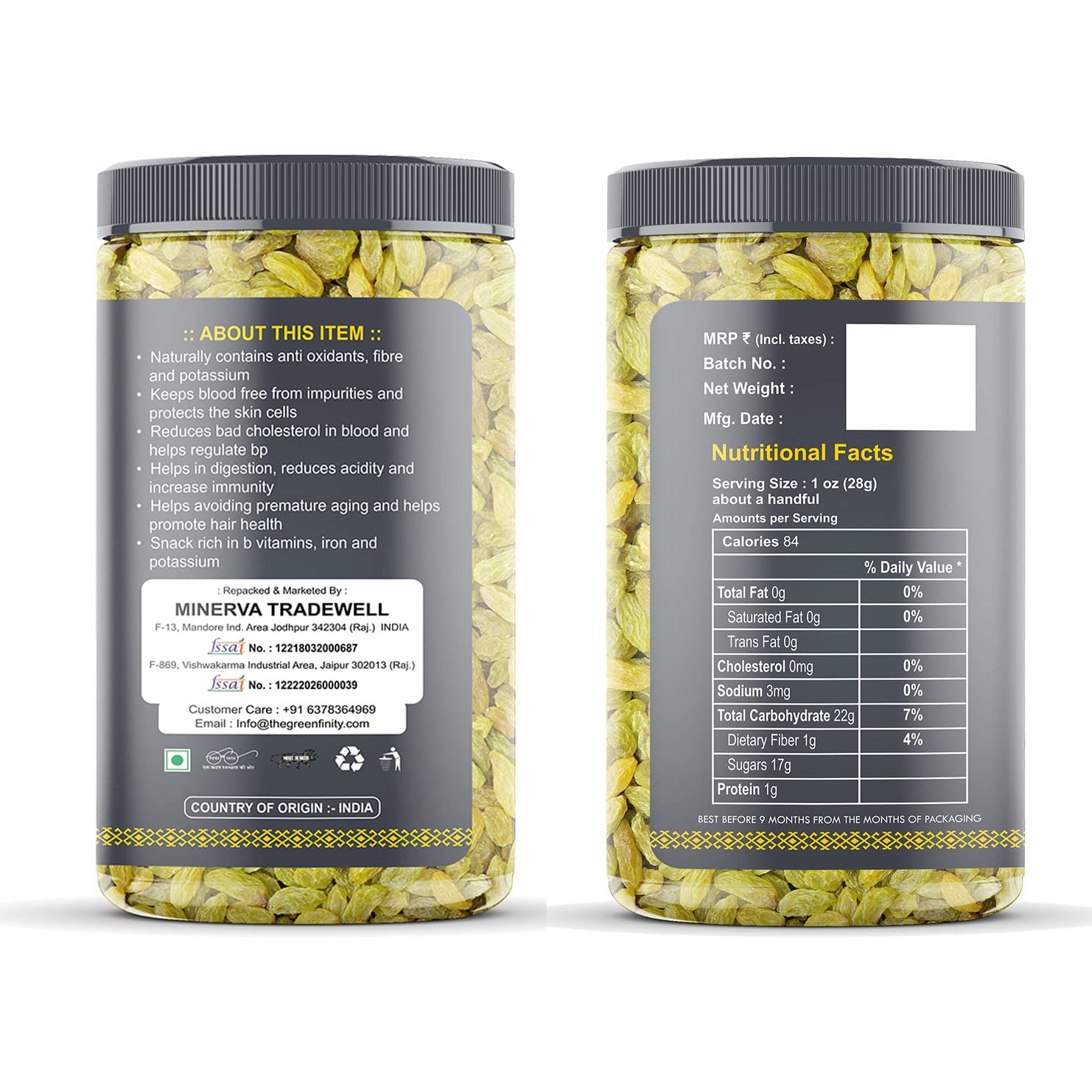 - Premium Green Raisins: Naturally sweet and bursting with vital antioxidants, these raisins are an excellent source of quick, natural energy and digestive support.