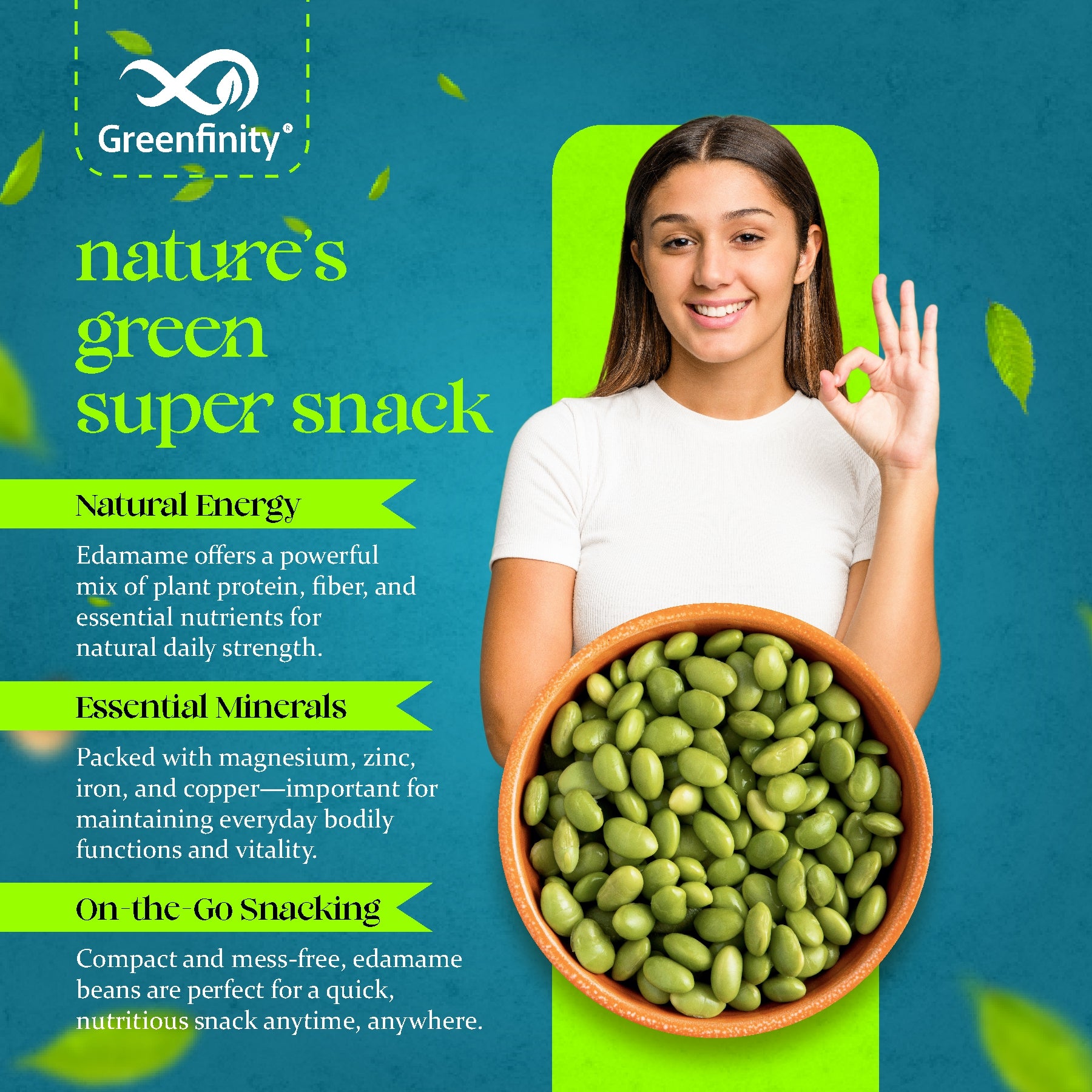 Greenfinity Roasted Edamame 250g | High Protein Vegan Snack | Roasted Not Fried Soybeans | Healthy Crunchy Diet Snack for Gym, Weight Loss & Office | Premium Plant Protein